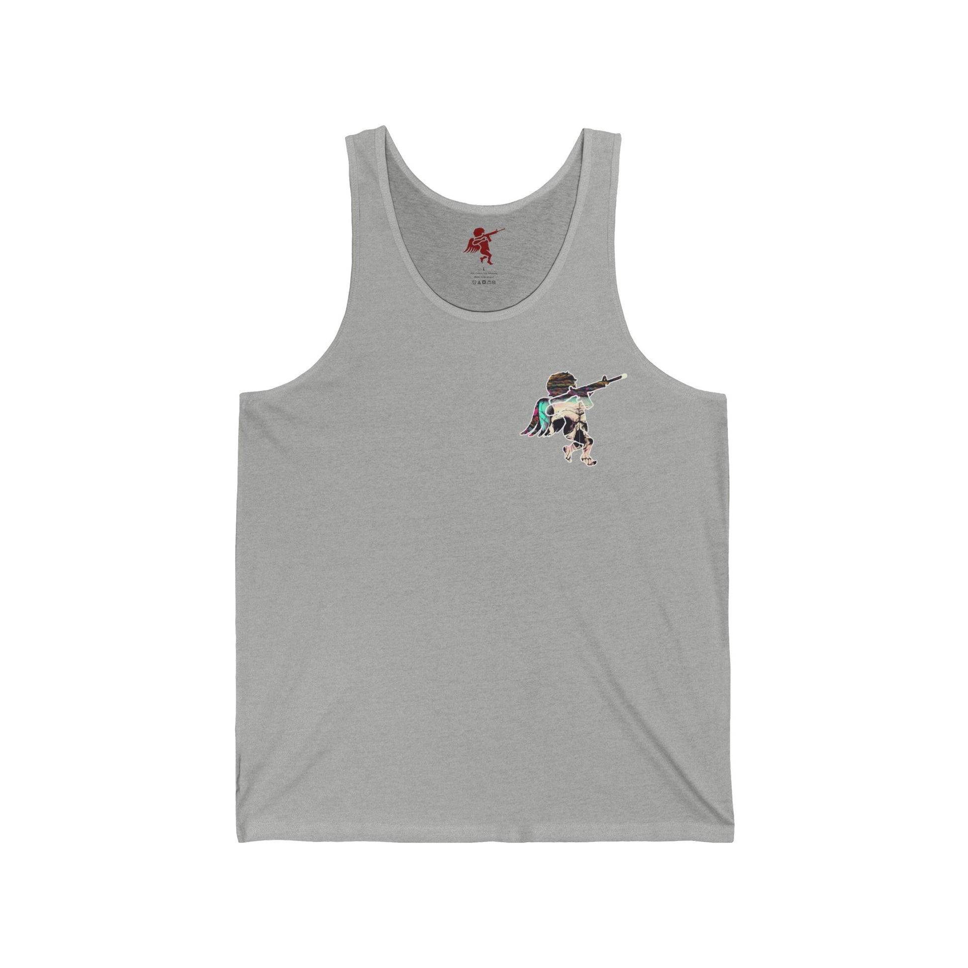 This must-have unisex jersey tank top fits like a well-loved favorite. High quality print makes it an ultimate statement shirt for years to come. This item has side seams to provide structural support. All bindings are the same fabric as the rest of the tank. Depending on the color, cotton, polyester, or rayon can appear.
